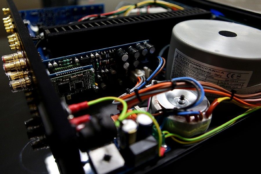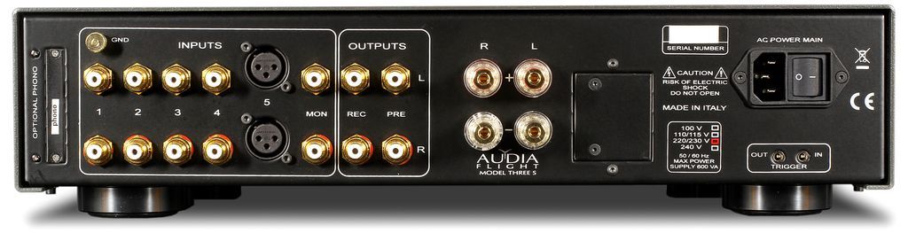 Le châssis a été retravaillé et permet un accès direct aux réglages de l’entrée Phono MM/MC sous la forme d’un fenêtre s’ouvrant en face arrière, sur la carte optionnelle. La seconde option DAC sur entrée USB au format 24/192 est disponible.