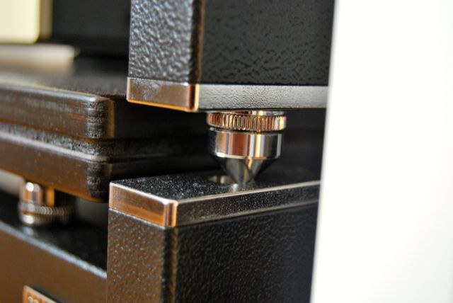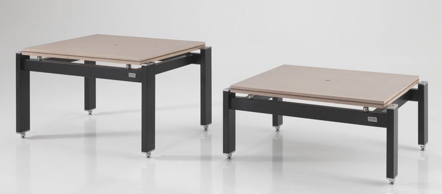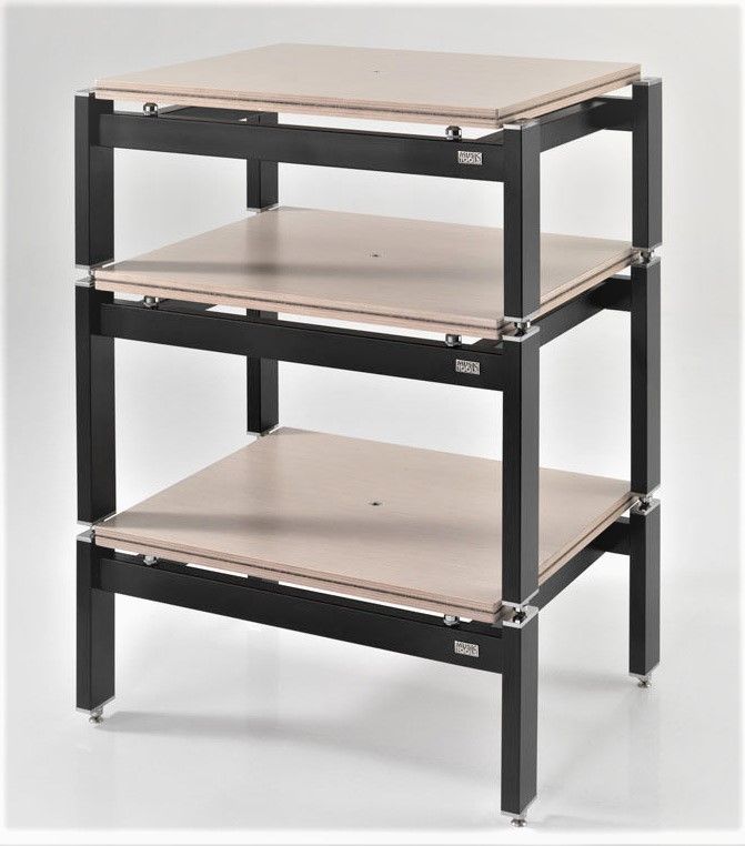 Chaque module est constitué d’une structure en aluminium anodisé et d’étagères de bois prenant en sandwich un matériau amortissant spécial.